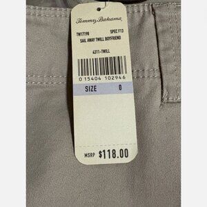 NWT Tommy Bahama Sail Away Twill Boyfriend Pants Size 0 Khaki Tan