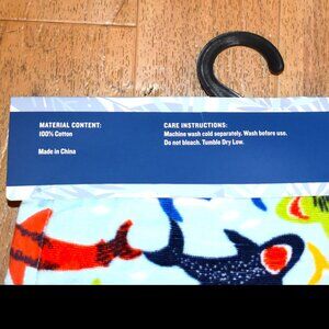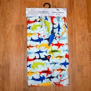 New with tags Tommy Bahama kids hooded towel. 100% cotton. Features shark pattern throughout. Measures 24" x 48". Comes from a smoke free home.