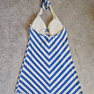 Tommy Bahama blue & white chevron striped halter dress with removable pads. Nautical