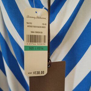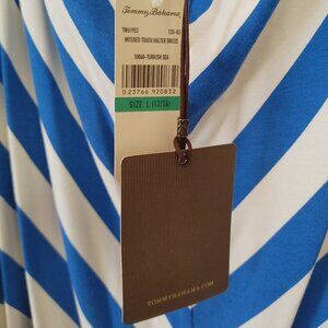 NWT Tommy Bahama Striped Blue & White Halter Dress Nautical Size Large