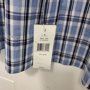 NWT Tommy Hilfiger Blue & White Plaid Button Front Shirt Size 151/2-34/35