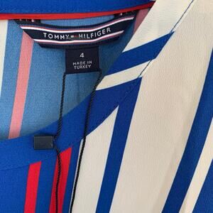 NWT Tommy Hilfiger Dress Size 4 Midi Flare Colorful Patriotic Keyhole Neck