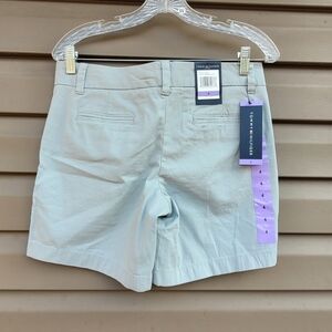 Tommy Hilfiger Flat Front Shorts. Women's size 4. New with tags. Color dove grey. Front side pockets, faux back slits. Great for business casual, golf, or out and about. Measurments while flat and approximate.