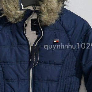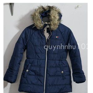 NWT Tommy Hilfiger Girls Fleece Lined Puffer Jacket Navy