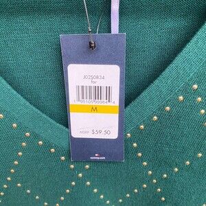 NWT. Tommy Hilfiger Green Cotton Argyle/Harleqiun gold tone studs Size Medium M