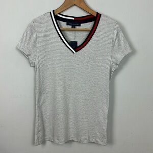 NWT Tommy Hilfiger Grey/White V-Neck Tee Sz M