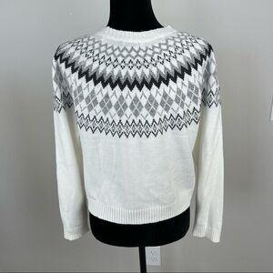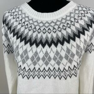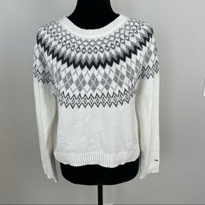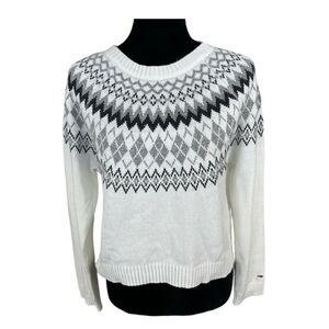 NWT Tommy Hilfiger Jenas White with grey ornament print cotton blend sweater M