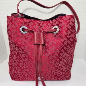 NWT Tommy Hilfiger Logo Rich Red "TH" Monogram Drawstring Bucket Handbag