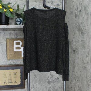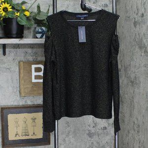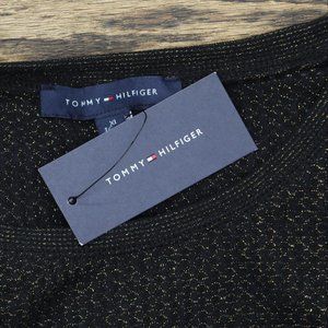 NWT Tommy Hilfiger Metallic Waffled Cold-Shoulder Shirt J2IH6834 L Black / Gold
