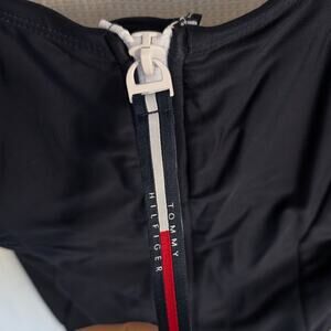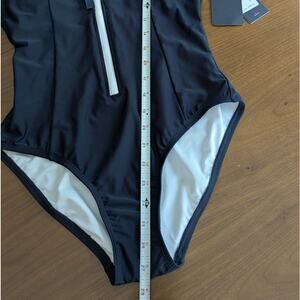 NWT Tommy Hilfiger Navy Over The Shoulder Half Zip One Piece Swimsuit, Size M