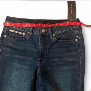 NWT Tommy Hilfiger Sz 2 women’s TriBeCa TH flex raw cuff Dark wash jeans