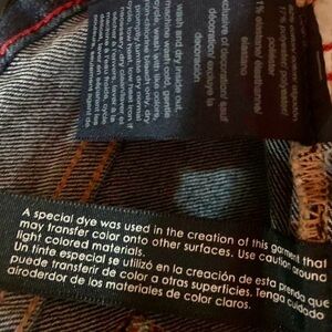 Made from denim fabric with a medium to dark wash, they have a zip and button closure, embroidered accents, and a 5-pocket design.