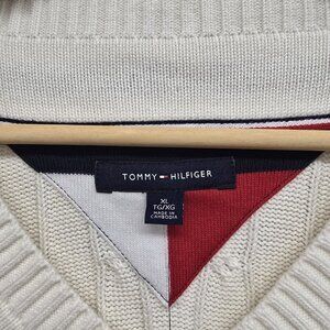 NWT Tommy Hilfiger V-Neck Cable Knit Sweater Mens XL Cream Cotton Classic Logo