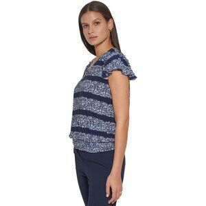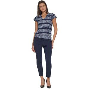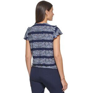 NWT Tommy Hilfiger V-Neck Flutter-Sleeve Top H25TM88H XL Midnight Multi Blue