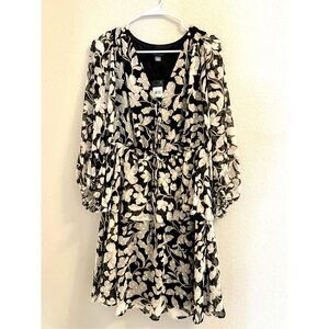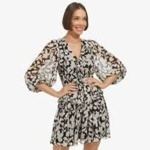 NWT Tommy Hilfiger Women's Balloon Sleeve Tie Front Floral chiffon Print Dress