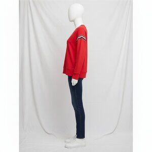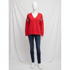 NWT Tommy Hilfiger Women's Red with Metallic Stripes V-Neck Sweatshirt M