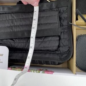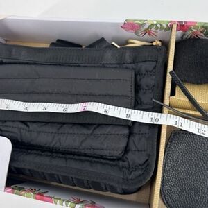 NWT Tommy Bahama Mini-Mighty Quilted Nylon Crossbody in Black has Front Flap Pocket with 2 Card Slots, Zip Top, Interior Zip Pocket, Interior Drop-In Pouch & 4 Card Slots-Adjustable Strap, Measures Approx 10” x 7”