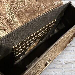 NWT Tony Lama Bronzed Floral Tooled Crossbody Saddle Bag - Brown RETIRED…