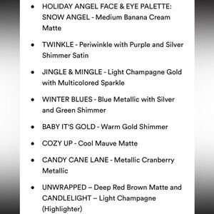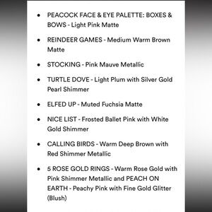 This Set Contains: 3 x 0.13 oz/ 3.68 g Palettes in Taste of Christmas Face & Eye Palette, Peacock Face & Eye Palette, Holiday Angel Face & Eye Palette. Retails for $105 What it is: A limited-edition set featuring three individually packaged palettes with luxuriously scented face and eye products in the most wonderful shades of the year. What Else You Need to Know: This set—including three holiday-inspired palettes—is perfecting for gifting. The Taste of Christmas Face & Eye Palette smells like pecan pie and is a collection of neutrals, plums, and a pop of shimmering shades. The Peacock Face & Eye Palette smells like gum drops and is a collection of neutral rosy shades. The Holiday Angel Face & Eye Palette smells like Christmas treats and is a collection of holiday neutrals and sparkling, icy tones.