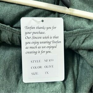 NWT Toofan Textured Olive Green Tunic Top Size 1X Lagenlook Art to Wear