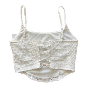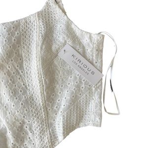 not sure where i got this, but it’s super cute and nwt—it just doesnt fit me, unfortunately. says size small but definitely fits more like an xs and is adjustable with the corset back