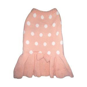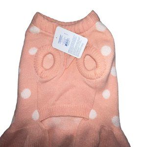 NWT Top Paw Pink Polka Dot Ruffled Skirt Bow Pullover Sweater Dress Dog L