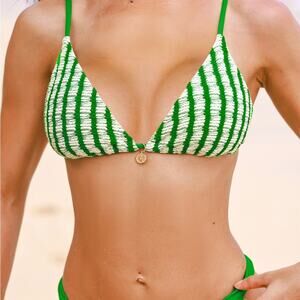 NWT Top size M Cupshe Fresh Squeezed Striped Bikini triangle Top w/ medallion