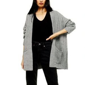 NWT TopShop Long Cardigan Sweater Gray Knit Pockets