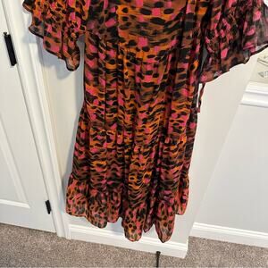 NWT TopShop Orange Black Pink Printed Maxi Dress 6