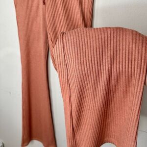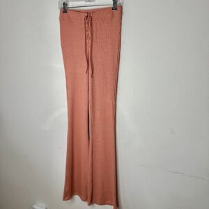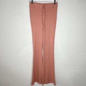 Topshop Peach Ribbed Knit Flare Leg Front Waist Lace Up Tie Legging Pants
