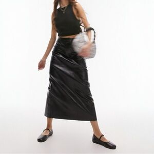 NWT Topshop Croc Embossed Faux Leather Midi Women's Skirt US 6 (Fits like a 2-4)
