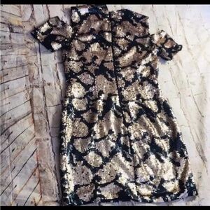 NWT Topshop Gold & Black Sequins Peekaboo Shoulder Party Dress Sz 6