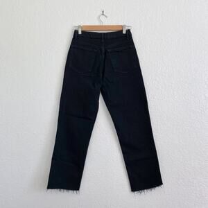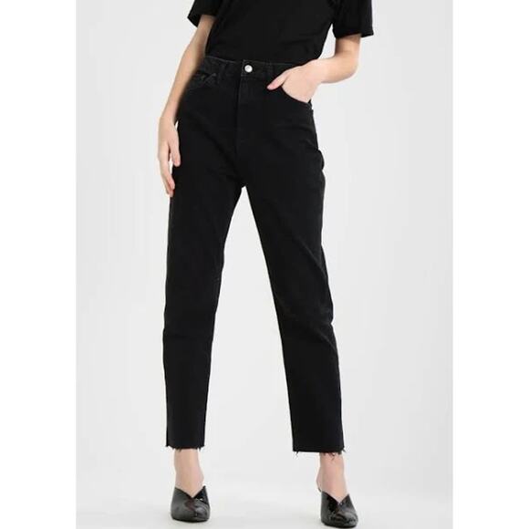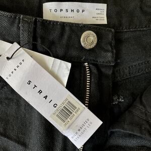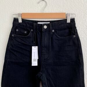 NWT Topshop High Waisted Straight Leg Jeans Raw Hem Black Denim Women's 4 / 26