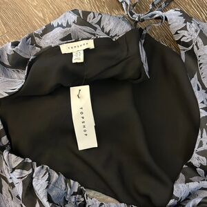 NWT Topshop Jacquard Puff Sleeve Mini Dress Blue Floral Open Back US 12 UK 16