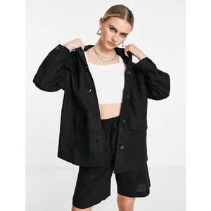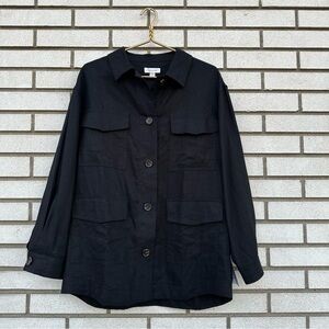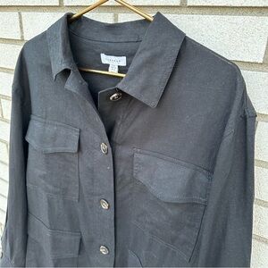 NWT Topshop Linen Blend Shacket Black Button Front Pockets Jacket