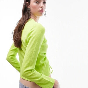 NWT Topshop Long Sleeve Ruched Top. Lime. Size 6