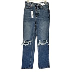 NWT Topshop Mid Rise Loose Fit Dad jeans Blue Washed Womens Size 2
