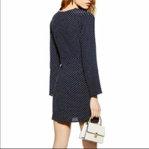 NWT Topshop Navy Blue Polka Dot Tortoise Shell Buckle Wrap Dress. Size 8. Adorable polka dot long-sleeve dress with a tortoise print belt. Wrap style. Absolute perfect condition, no flaws!