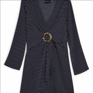 NWT Topshop Navy Blue Polka Dot Tortoise Buckle Wrap Dress Size 8