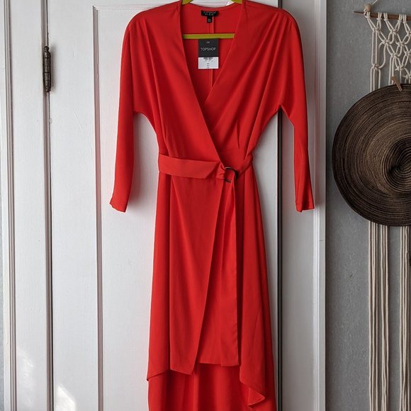 💃 NWT! Topshop O-Ring Wrap Midi Dress in Red, Size 2 US (fits like 0)