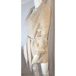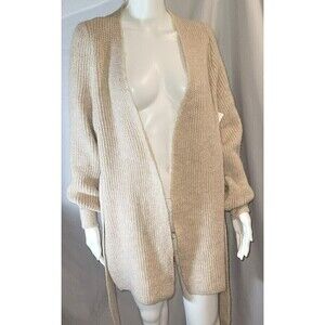 Topshop from Nordstrom oversized open front cardigan in oatmeal heather. Long sleeves with ribbed trim at the cuffs and wrap around belt Kind of a creamy beige with a hint of blush.