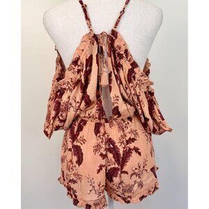 NWT Topshop Pink Floral Cold Shoulder Romper M