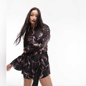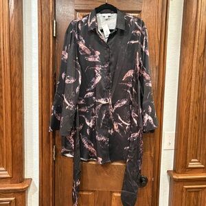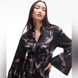 NWT Topshop kimono mini shirt dress in multi abstract print Sz 6 $85 w/ tie