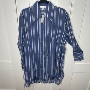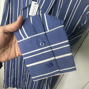 NWT Topshop small mini shirt dress with step hem in blue stripe (v1)