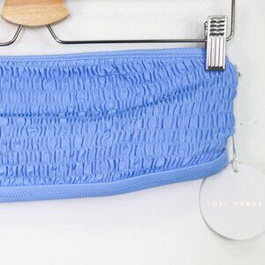 NWT Tori Praver Renee Smocked Bandeau Strapless Swimwear Bikini Top in Capri Blue. Size Medium.