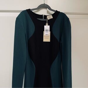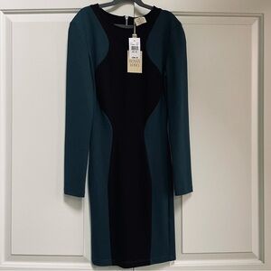 NWT Torn By Ronny Kobo Color Block Zipper Detail Bodycon Knit Dress Office