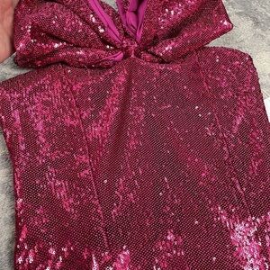 NWT Torn by Ronny Kobo Hot Pink Tulip Sequin Bow Front Lindsay Mini Dress XS