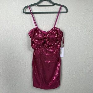 NWT Torn by Ronny Kobo Hot Pink Tulip Sequin Bow Front Lindsay Mini Dress XS