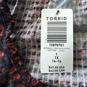 NWT Torrid Crinkle Gauze Cold Shoulder Tie-Front Top / Long Sleeve Blouse
