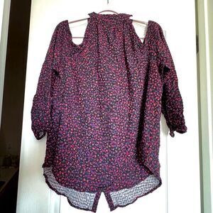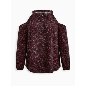 Add a playful touch to your wardrobe with this flowy cold-shoulder blouse from Torrid! With a relaxed fit, button-down front, and billowy sleeves, it’s both comfy and stylish. Pair it with jeans for a casual look or dress it up with a skirt for a night out. The cold-shoulder design adds just the right amount of flirt to your outfit!